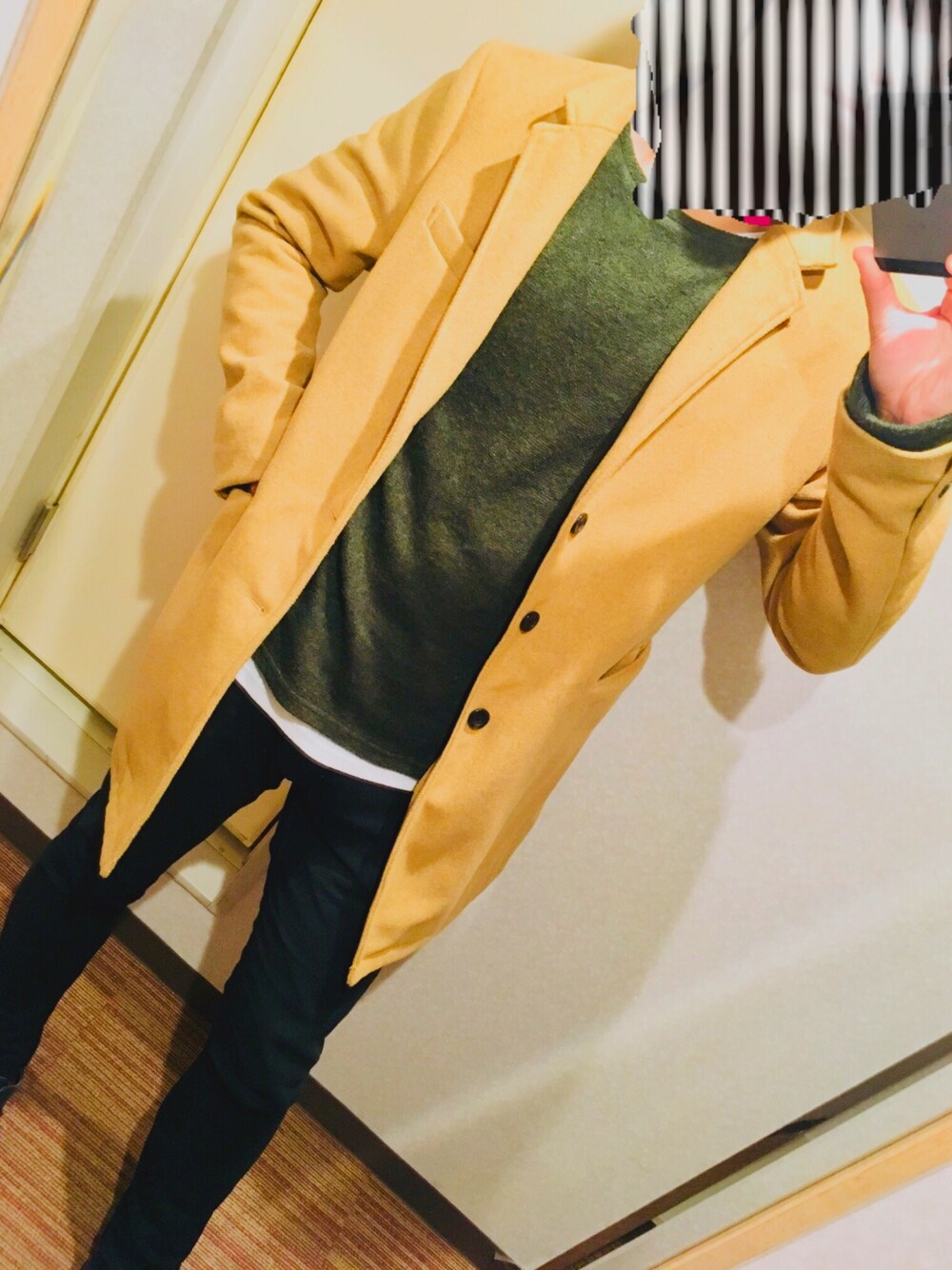 チェスター×ニット×スキニー キャメル×グリーン×ホワイト&ブラック この色合いけっこう良い。 wegoで揃えるとやっぱりまとまる。 キャメルのチェスターを使っていつもと違う印象出せそう。