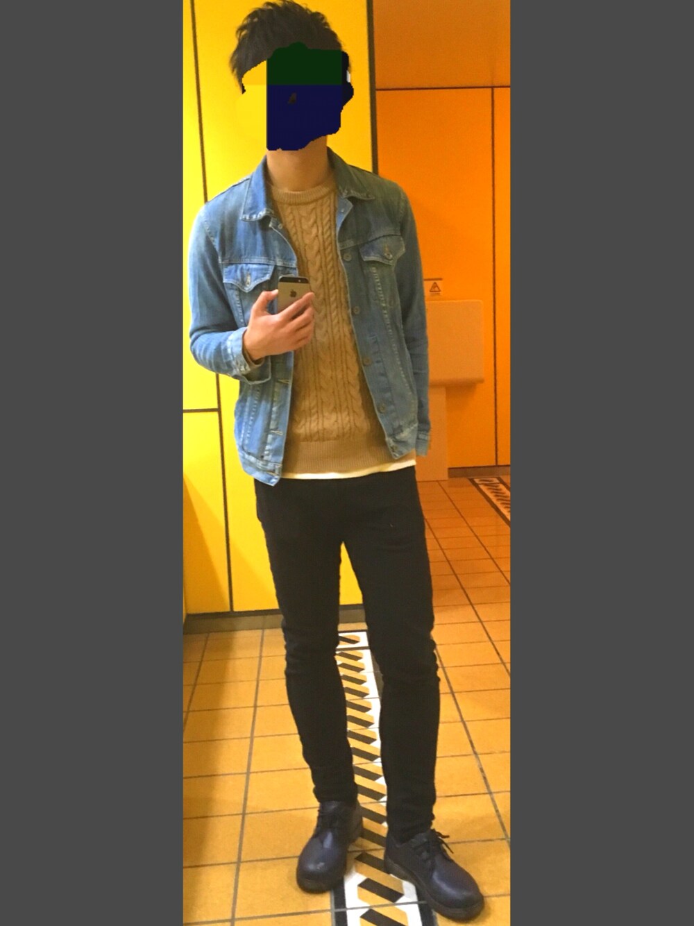 あけましておめでとうございます! 今年最初は デニムgジャン×ニット×スキニー の組み合わせ。 ニット(キャメル)とgジャン(ブルー)の相性が良い。 purple&yellowの生地も柔らかくてお気に入り。 今年もよろしくお願いします!