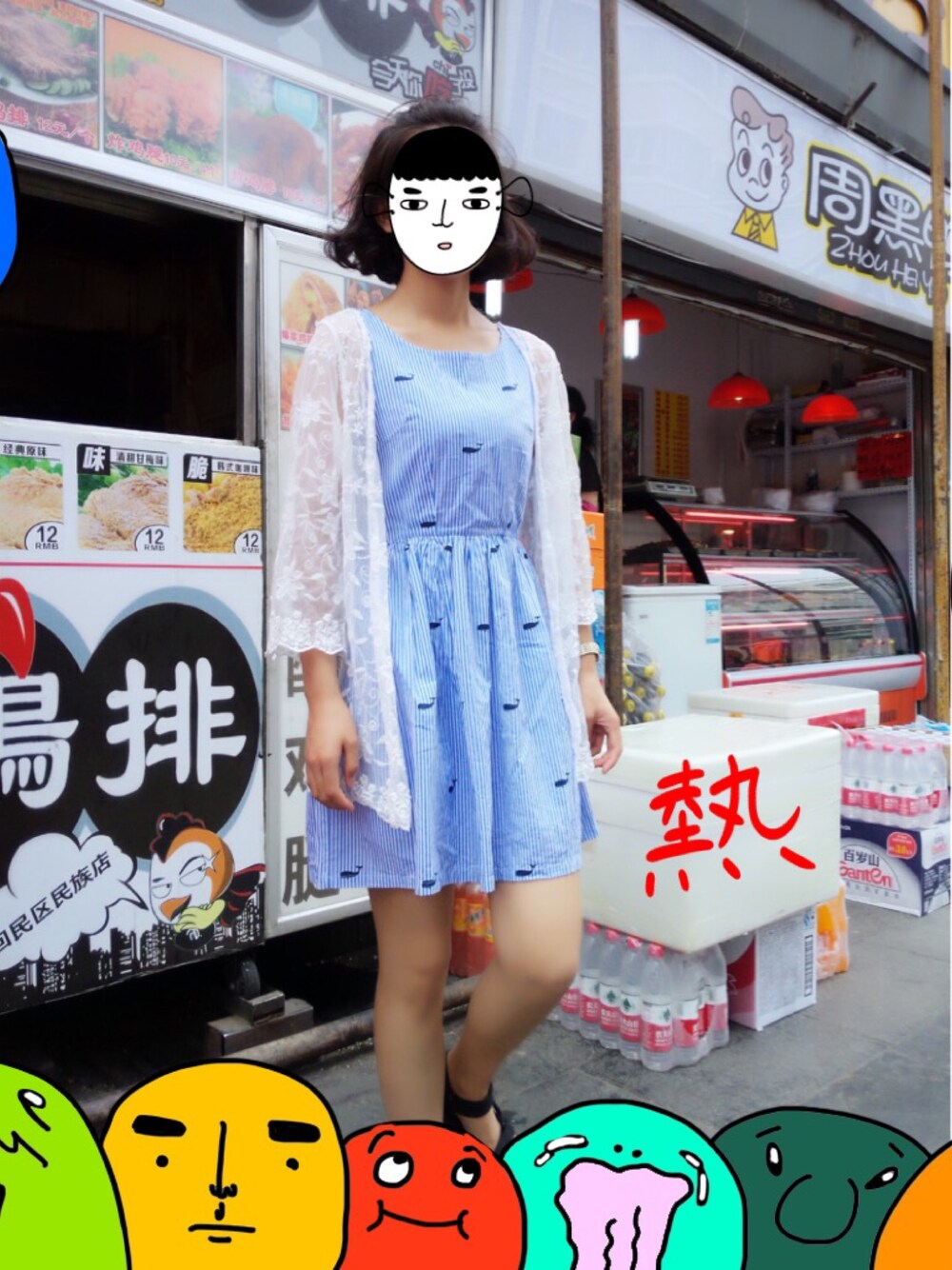 蓝色海豚连衣裙+白色防晒外套 蓝色会在夏天给人眼前一亮的感觉