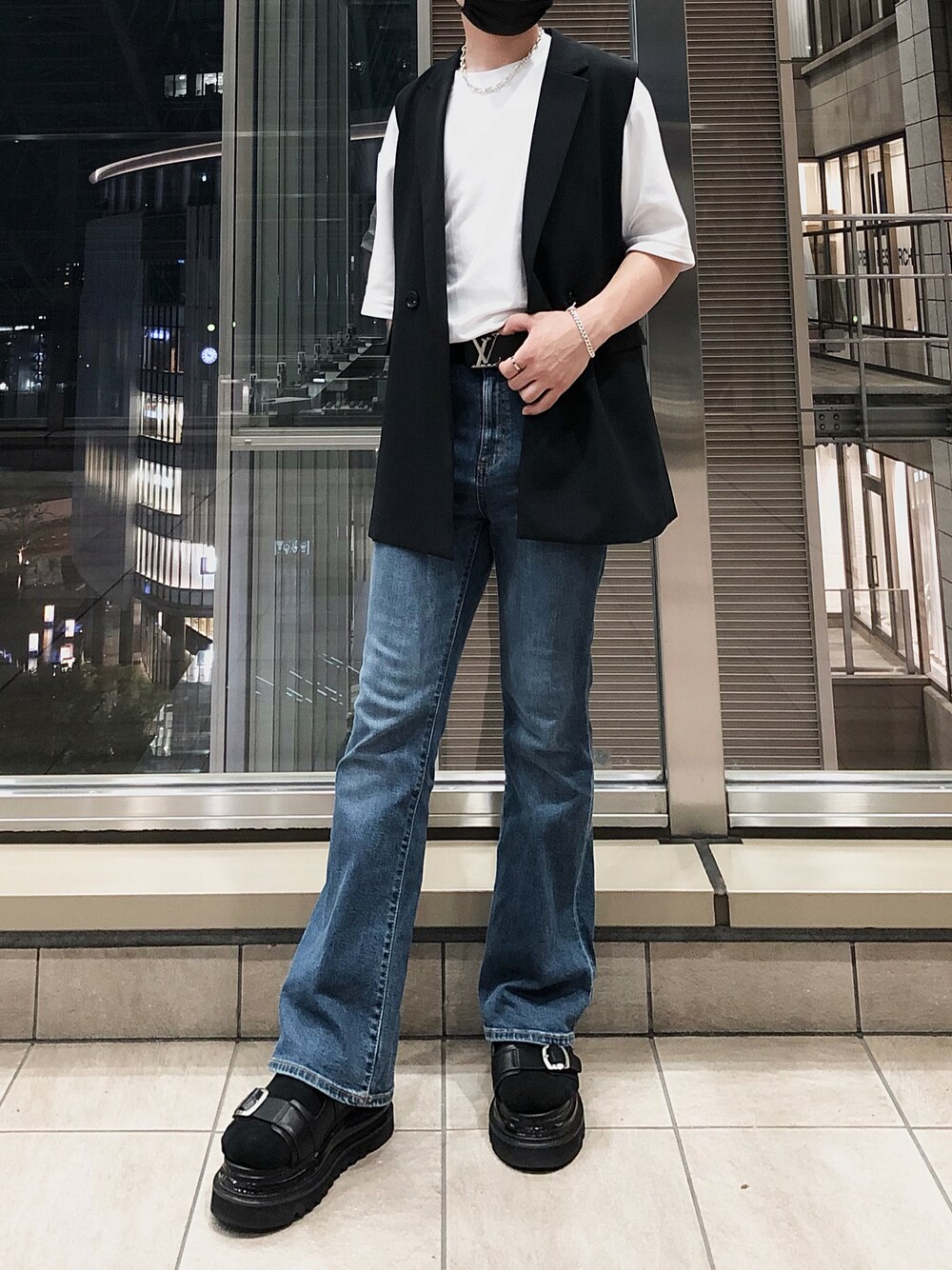 いつもご閲覧ありがとうございます😊 Tシャツの上にベストを合わせることによってカジュアルから綺麗めに仕上げることができます! 今年人気のフレアジーンズは1着あると着回し抜群です!