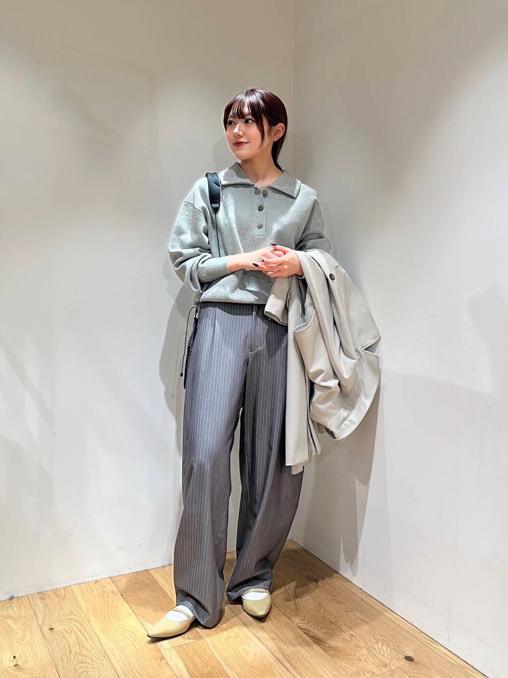 GLAYのワントーンコーデです パンツはサイズ38を着用しています 足の甲に溜まるくらいのサイズ感です コートは軽い着心地で、夏前まで長く使えるアイテムです🌟 Instagram @_xunzi_ お問い合わせの際は、福岡パルコ店までお電話下さい! 在庫確認、店舗通販お気軽にお待ちしております☺️ 📞 050-2017-9008 フォロー お気に入り登録 もお願いします🙂↕️
