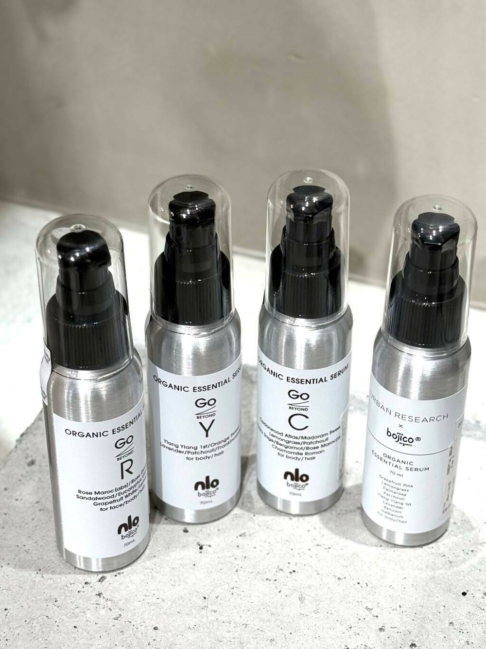 ギフトとしても人気が高いbojicoのオイルです 髪と身体、顔にも使えるので 髪につけて余ったオイルをそのまま手に馴染ませたり、乾燥しやすい肘、膝に塗りこんだりするのもおすすめです🌟 C シダーウッドとマジョラムスウィートの香り Y イランイランとパチュリの香り R ローズとゼラニウムの香り アーバンリサーチとコラボのアイテムは オリエンタルグリーンの香りです パルコ店ではCとYが人気です❕
