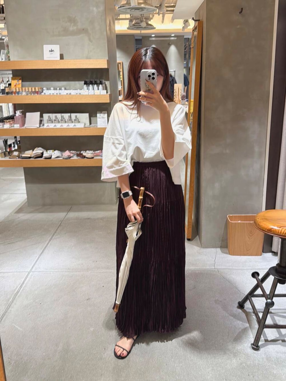 薫子(SENSE OF PLACE 天神地下街)の長傘「晴雨兼用バンブーアンブレラ」を使ったコーディネート