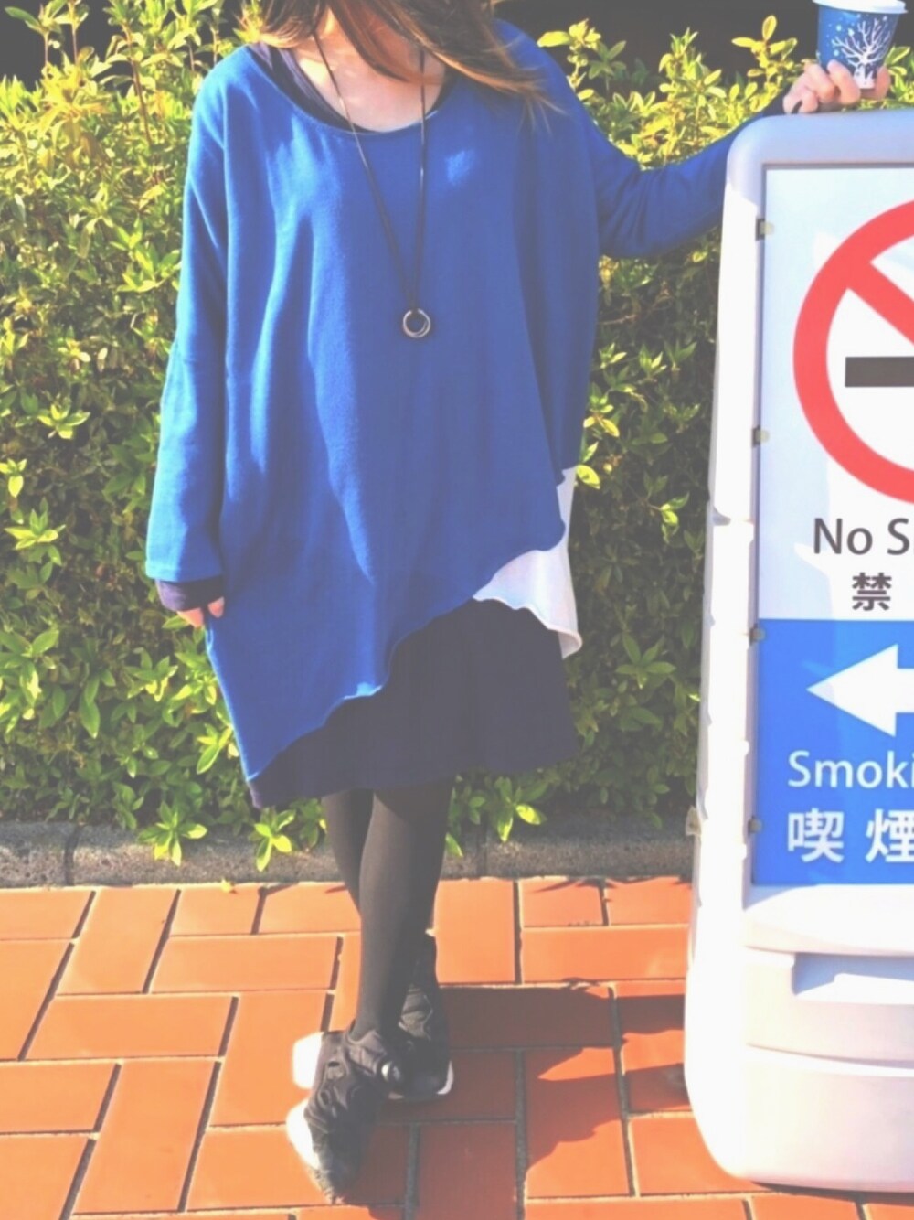 このチャイハネのワンピース、 カラーが3連になっていて可愛いのでお気に入りです(΄◉◞౪◟◉`) ブルーとホワイト部分で1着、ネイビー部分で1着のワンピースです。 実質二枚重ね着となるので、春や秋に着やすい〜。 ブーツ等と組み合わせると女性らしく可愛〜く着れるのでしょうが、私はあえてのポンプでスポーティさを。