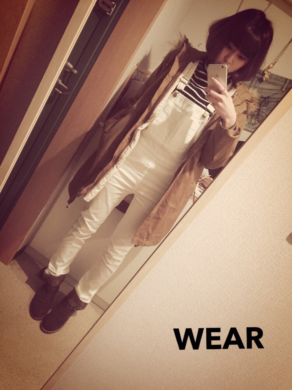 オーバーオール!久しぶり! ホワイトなので、他のアイテムで トーンダウン。