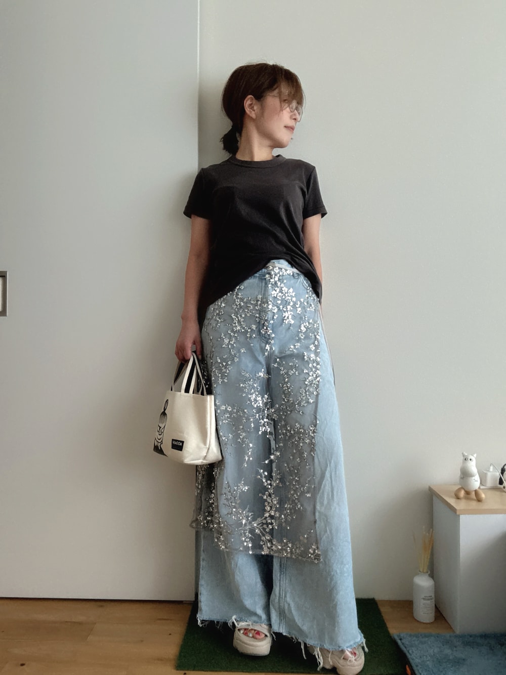 いつもゆるゆる投稿にお付き合いいただきありがとうございます😊 Tシャツデニムのシンプルコーデにラップスカート