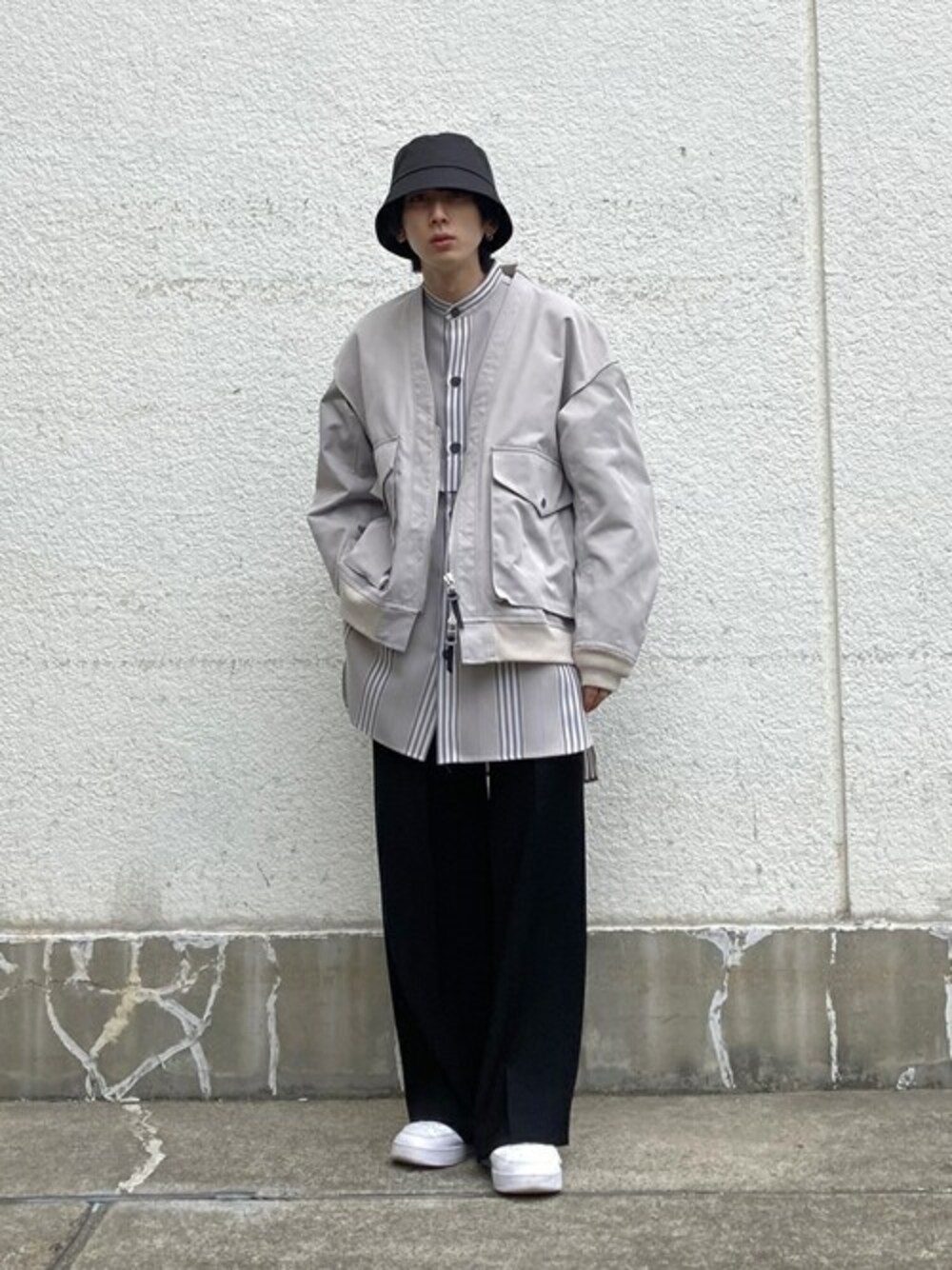 アウター、シャツ、パンツすべてサイズ1を着用しております。 アウターはボンバージャケットですが、襟元がシンプルなノーカラーでUTらしく綺麗目にも使っていただける仕上がりです。 シャツはかなりロング丈で、1枚で主役になれる逸材です! 175cmぐらいまでの方ならサイズ1で大丈夫です。 パンツは柔らかくドレープ感のある履き心地抜群のフレアパンツです。 1でもかなり丈感長めで、かなりモード感を出してくれるパンツです。