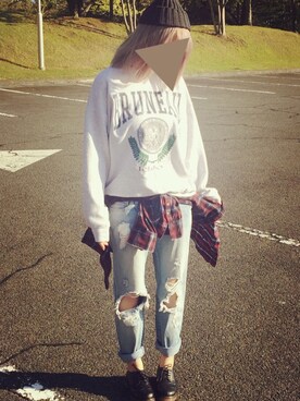 Like 古着 キャラクター デニム チェック柄 初めたばかりですが宜しくお願い致します。 いいね返します(U 'ᴗ' U)お洒落な人大好きです