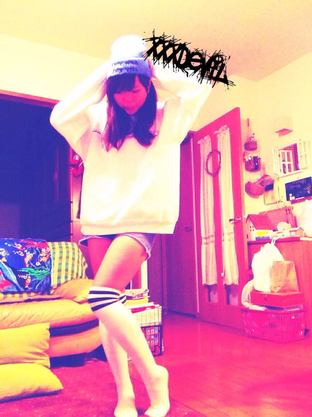 トレーナー⇨surf&hula ズボン ⇨?? 靴下 ⇨WEGO ニット ⇨INGNY 写真では履いてないですが靴はWEGOですヾ(・ェ・ヾ) トレーナーは男の方のLLサイズでわざとワンピースになるようにしてます😊💗
