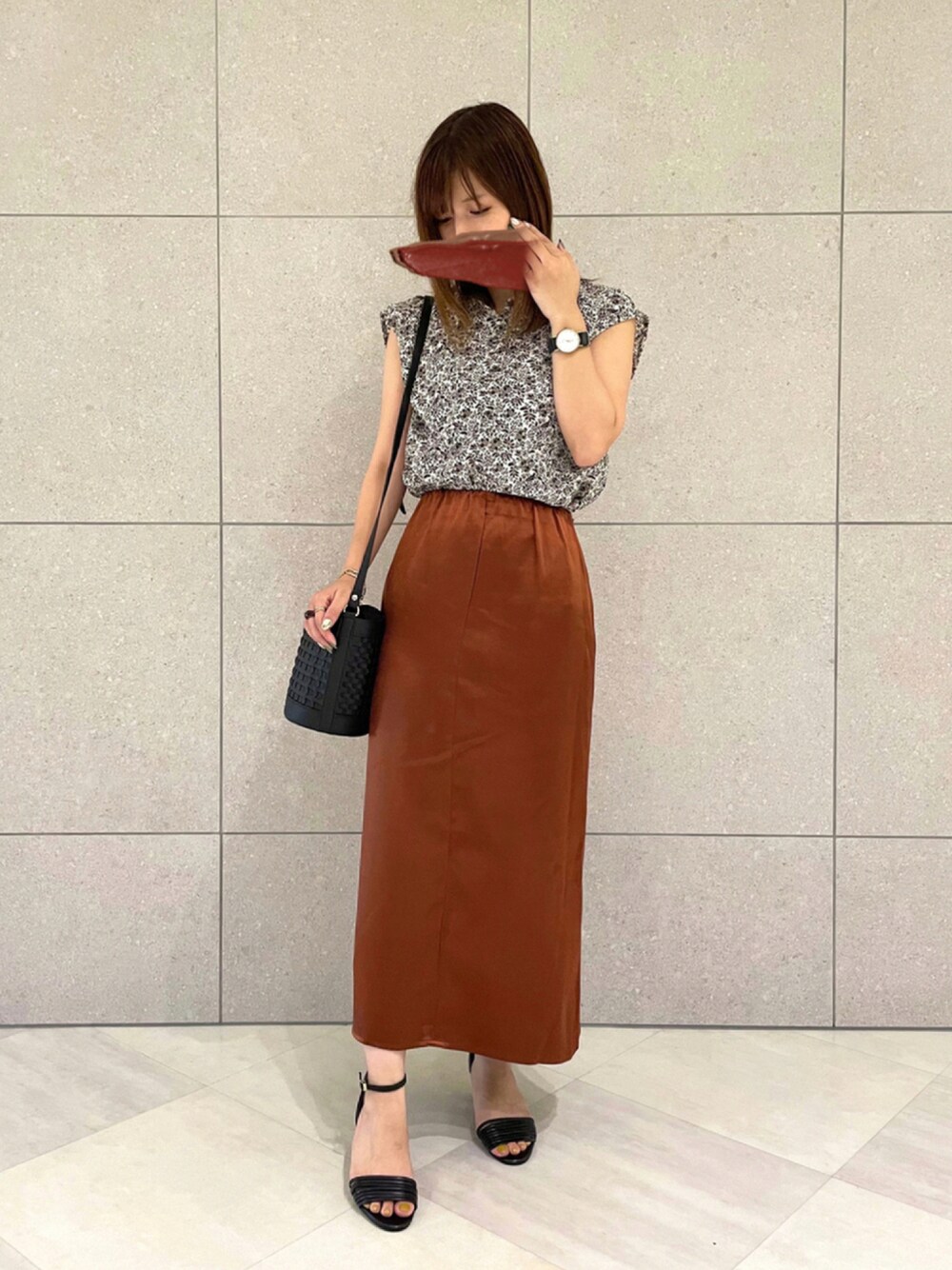 miho.kのシャツ/ブラウス「ジョーゼット単色花柄プリントシャツブラウス」を使ったコーディネート