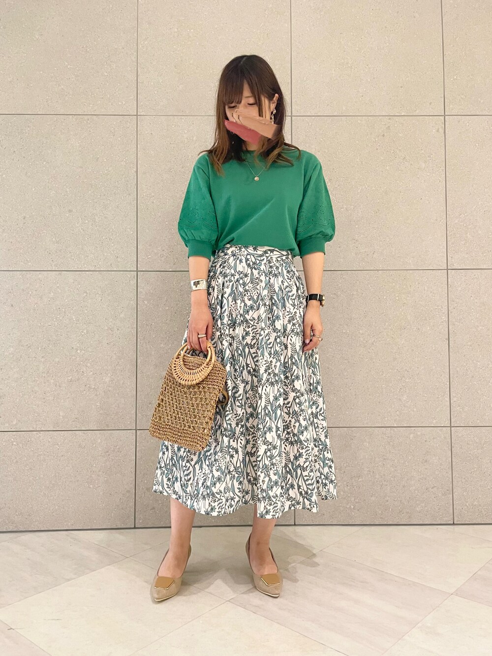 miho.kのスカート「ボタニカルプリントタックスカート」を使ったコーディネート