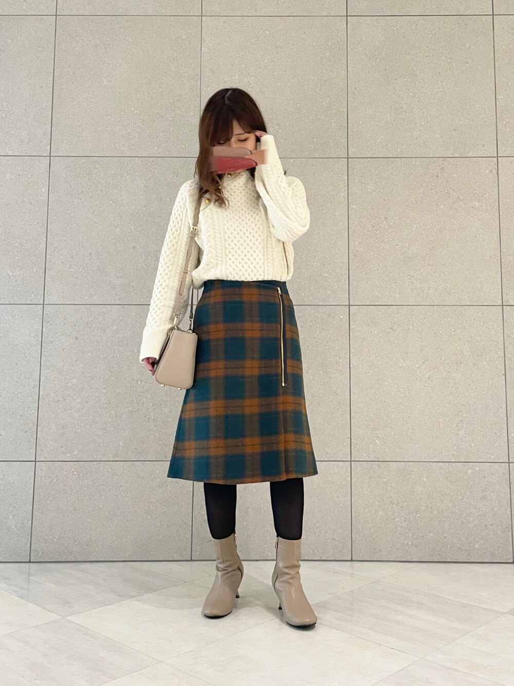 ケーブルニット×チェックスカートの カジュアルガーリーcoordinate🫶🏻🧡 コンパクトなシルエットのスカートは リバーシブルでも使えます- ̗̀ ☺︎ ̖́- タイツとブーツで季節感を出しました🧸⸝⋆ (足を出す勇気がなかっただけ)