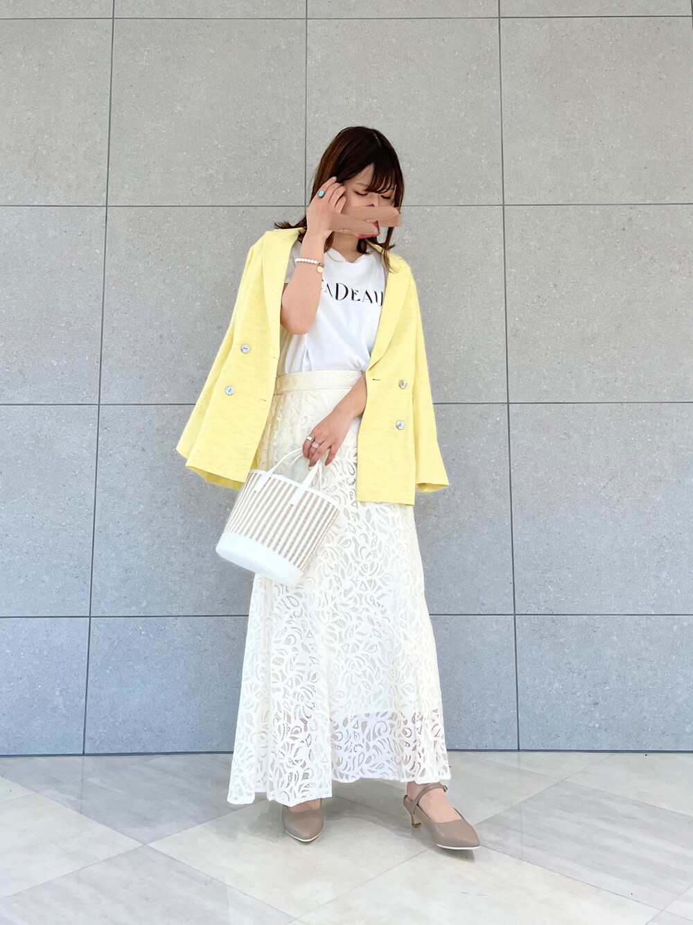 爽やかワントーンcoordinate🌼🌱 意外と馴染みの良いイエローが 気分をあげてくれます👍🏻 ̖́- 綺麗色のアウターinは オールホワイトですっきりまとめました- ̗̀ ☺︎ ̖́-