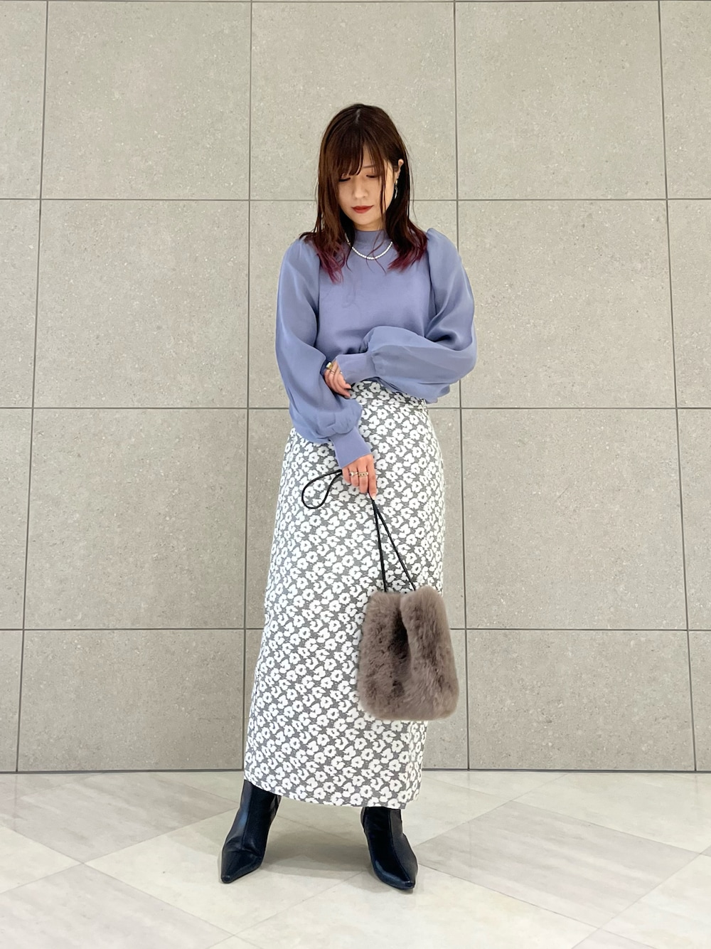 店頭でも大人気の オーガンジースリーブニット️🩵💎 ふんわりしたお袖がかわいい1枚です! くすみパステルでまとめてみました- ̗̀ ♡ ̖́-