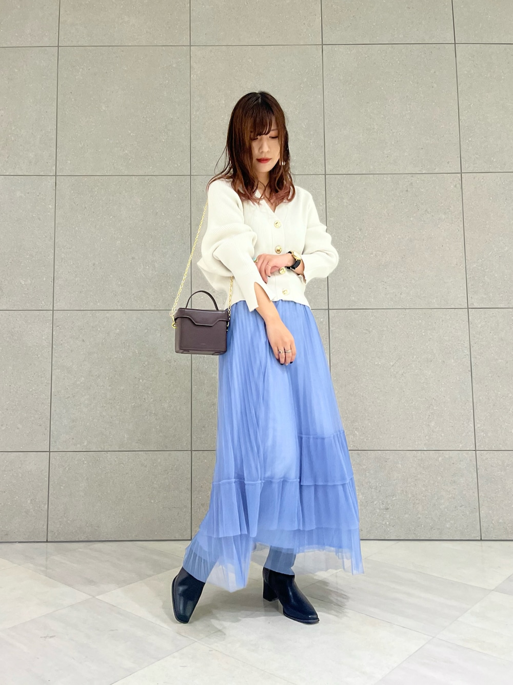 弓桁いずみさんコラボの 大人の洗練カラーニットのご紹介です🪞🪄🤍 1枚でも、レイヤードでも楽しめる 絶妙なシルエットのカーディガン🍒 ディテールまでこだわった1枚となっております! チュールスカート合わせできれいめガーリーに- ̗̀ ❤︎ ̖́-