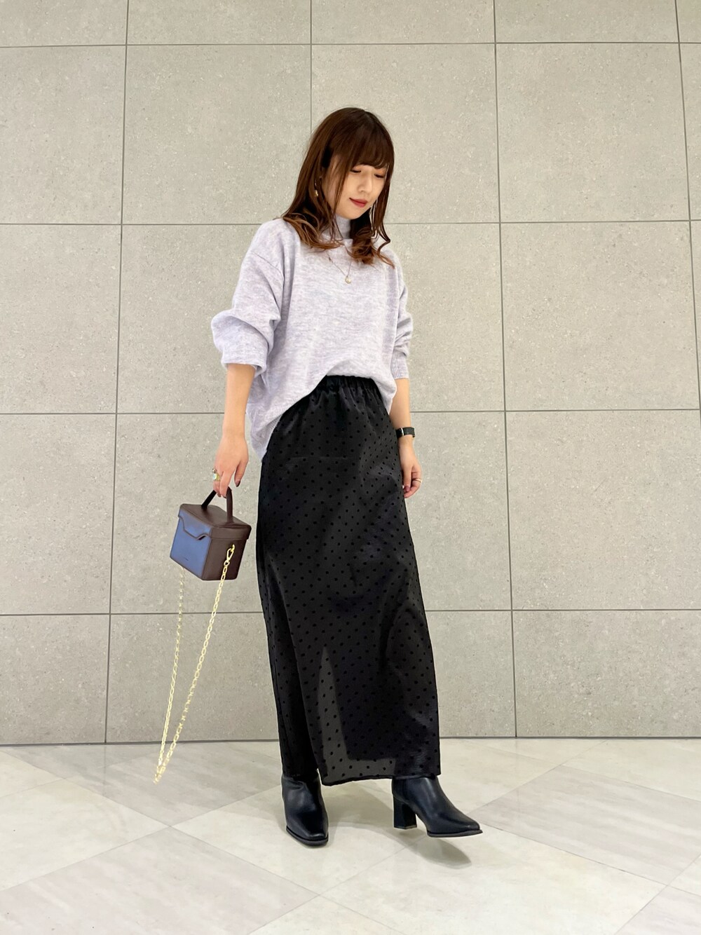 岡山店1番人気の ミックスラメニットのご紹介です🎀🐇 程よいざっくりシルエットで華奢魅せ! きらきらの繊細なラメがかわいい🩷 ほんのり透け感のあるドットスカートを合わせて 冬のイベントにもぴったりなコーデにしました🌟⋆꙳