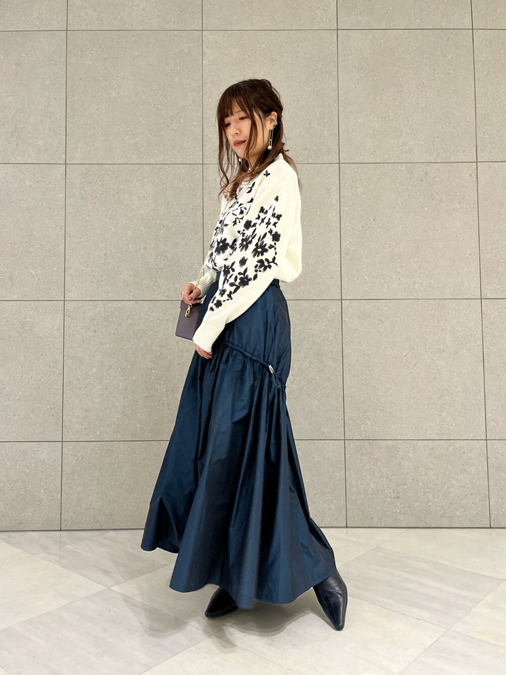 冬のTe chichi CLASSICは イベント事にもぴったりな華やか仕様🤍✨ お袖まで花が散らされたエンブロイダリーニット🌼*・ 甘さ控えめなので、 スカートスタイルでも大人っぽく着られます💋