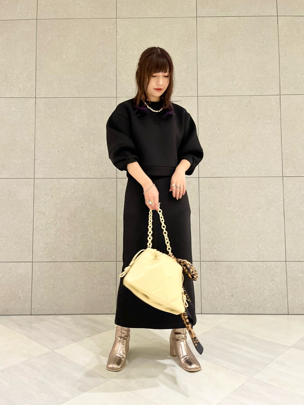 リアルバイのセットアップ🏁🖤 別々でも着回し抜群です( ¨̮ )( ¨̮ ) 小物使いで表情が変わるので、 春先はスニーカー合わせで着たいなあ👉🏻👈🏻💕 もちもち素材でストレッチもきいているので、 すっきりシルエットなのに ストレスフリーで着られます🥰