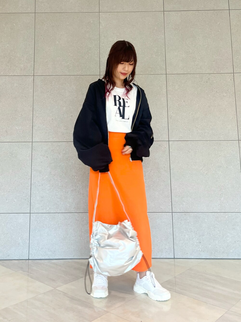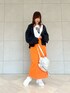 - ̗̀ 5 ̖́- 久々のLugnoncureのご紹介です🐶🍊 何より目を惹くオレンジスカート🧡🌟 長さが選べる2サイズ展開です! そしてポンチ素材でとても伸びるので履きやすい✌🏻Ü✌🏻 ロゴTee×ミリタリーブルゾンで ゆるっとカジュアルに合わせました🫶🏻
