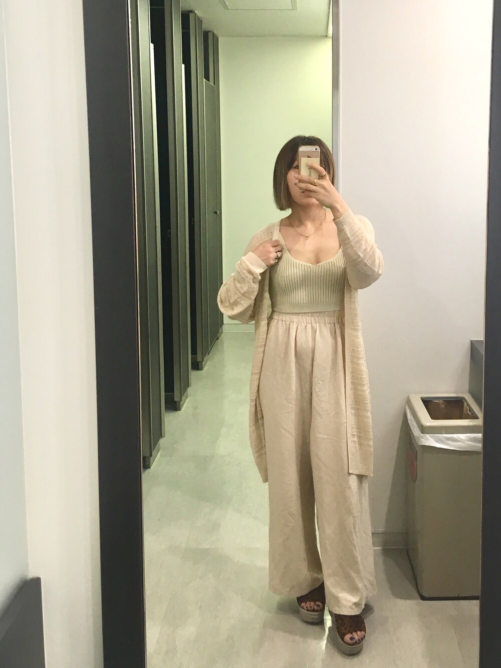 ワントーンでまとめた、カジュアルにもリゾートにも行けるラフなコーデ😎今年はベージュがアツイ👌映ってないけど、サングラスもピンクベージュでいい感じ。