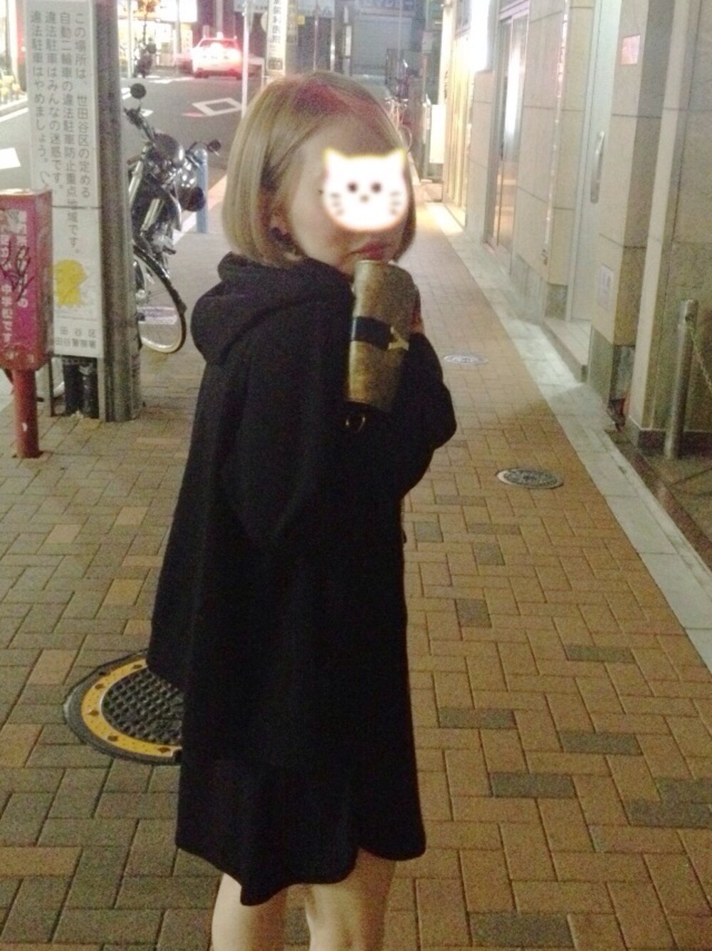 ✨ちょい夜道✨寒い。。。 🎩ブラック魔女コーデ🎩 パーカーはH&M 脱いでるけどアウターはSLYファーコート✨