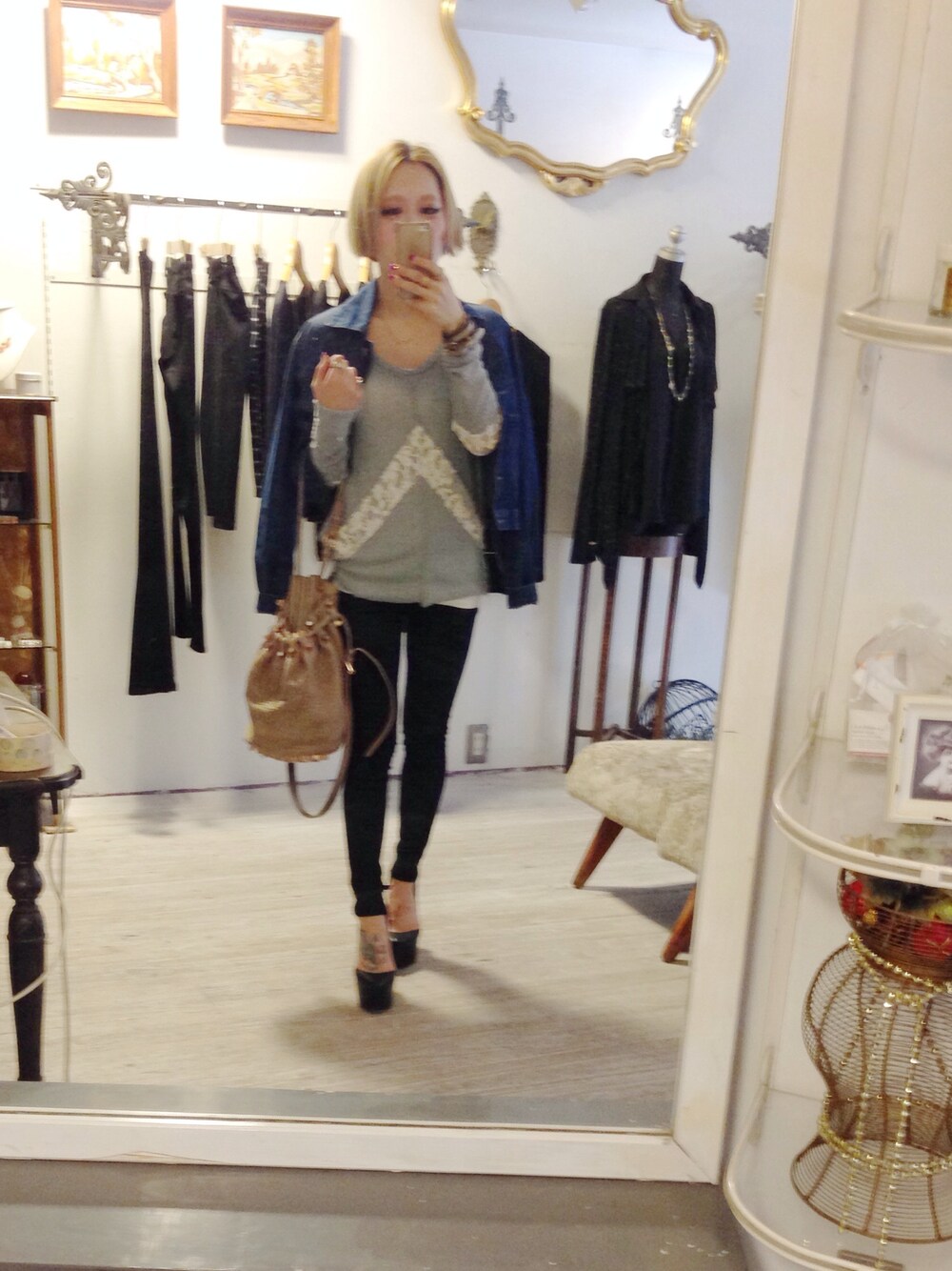 ブルー系のデニムジャケットにブラックデニムのスキニーパンツ、インには透け感のある甘めなニットです✌️ アクセはいつもと変わらず、、 Wangのバッグはスタッズなので、甘辛 最近はずっとアーユルヴェーダマッサージにはまって通ってます、至福♥️