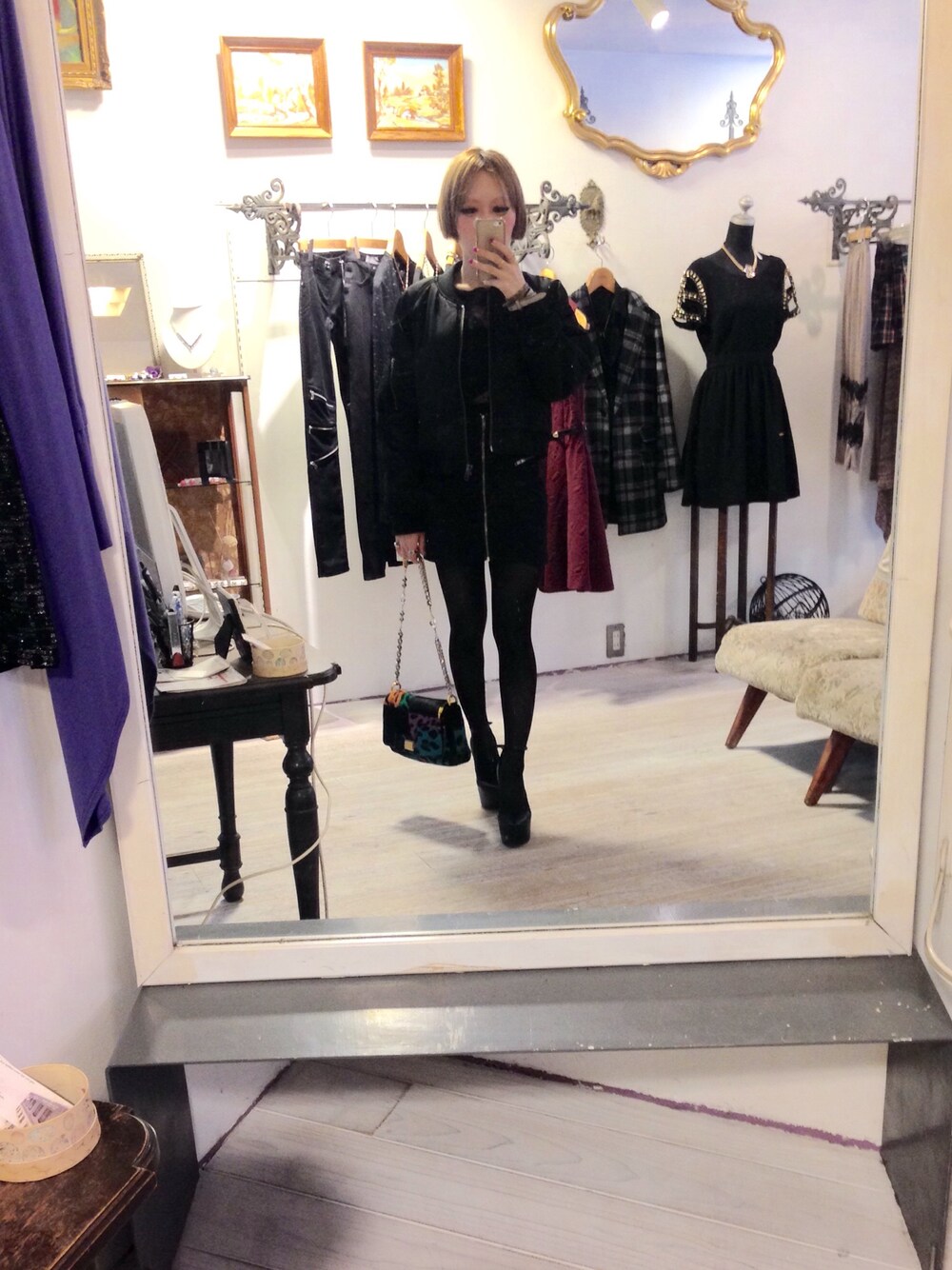 オールブラック久々です。 ブルゾンは厚手であったかい♥️ インのニット、透けてるからベッタリ重たい感じにならないです😊 ジップのスカートはサイズぴったりでお気に入り~~~秋を通り越して寒いですね。。。