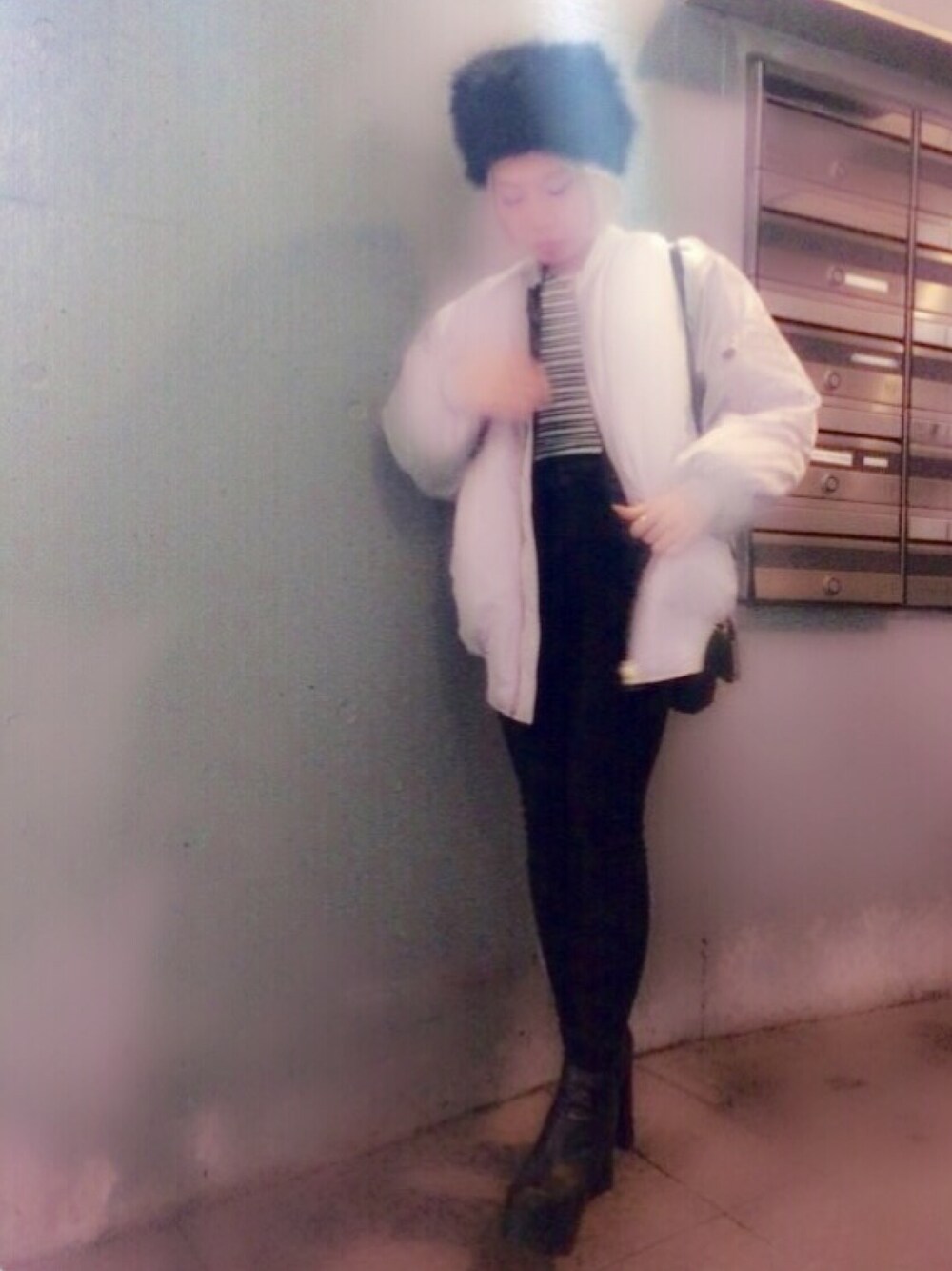 MA-1とロシアン帽が特におきにいり。すんごくあったかい😳😳😳❣️ インはヘソ出しクロップ丈、ハイウエストptsでバランス良く。。。 おなかさむい?😂笑 おきにいりの焼肉屋さんにいく途中です👅🍴