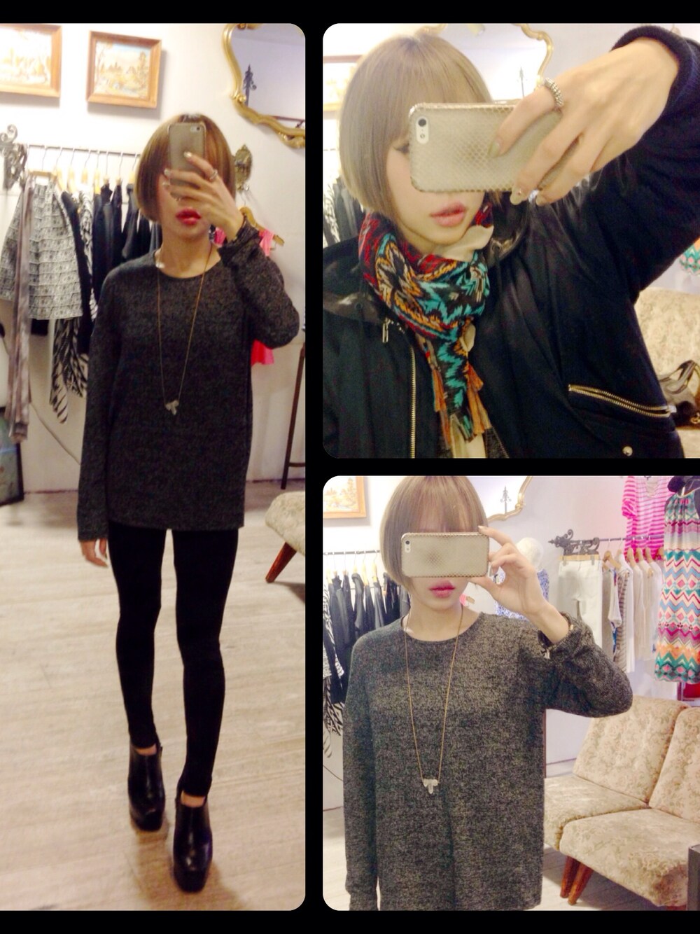今日寒すぎ ストールどこのか忘れた、柄柄で蛍光サマーカラーだけど、ベージュベースなのでなんとか大丈夫。 ニットは渋谷の頃のオープニングセレモニーで。