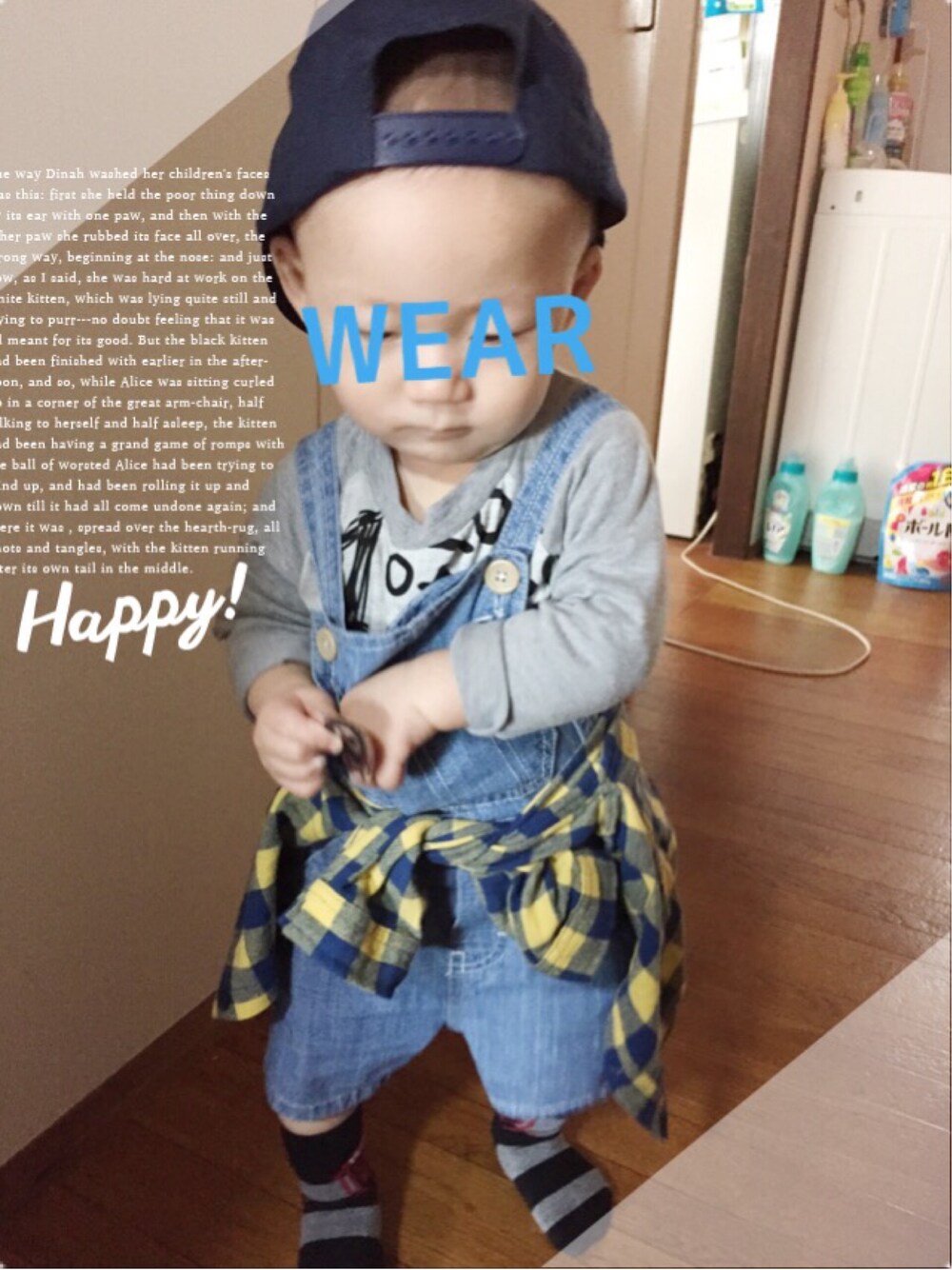 安定のALL西松屋♡笑 帽子はすぐ脱がれるので一瞬で撮った‼︎ やからブレてますw やっとサロペ親子コーデ出来た♡ 夏用やからまだちょっと早かったかな(^^)笑