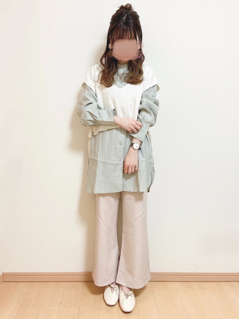 おはようございます\(¨ )/♡♡ いつもありがとうございます🐻♥ 今日は大人キレイめカジュアルコーデ⭐️ 寒いのにすみません(笑) このシャツがどうしても着たくて春先取りしちゃいました♬︎♡ 私の激推しカラーのミントの色味がかわいすぎる(TT) バックスタイルもめちゃくちゃかわいいので見てください♡ U.S.POLO ASSNさんの腕時計のベルト部分が ハリスツイードになってておしゃんです⌄̈⃝ ベルトの付け替えができちゃいます♬︎ ❁⃘Instagram❁⃘ →yuririn_wear