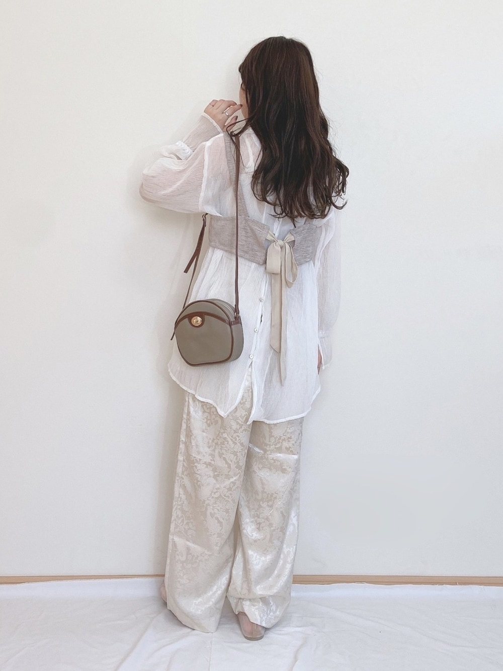 おはようございます\(¨ )/♡♡ いつもありがとうございます⌄̈⃝♥ 消えそうな色コーデ▹▸ ジャガードパンツ結構挑戦アイテムやなって 思ったけど、シンプルにシャツと合わせたら 可愛かったです♡ ❁Instagram❁¨̮ →yuririn_wear