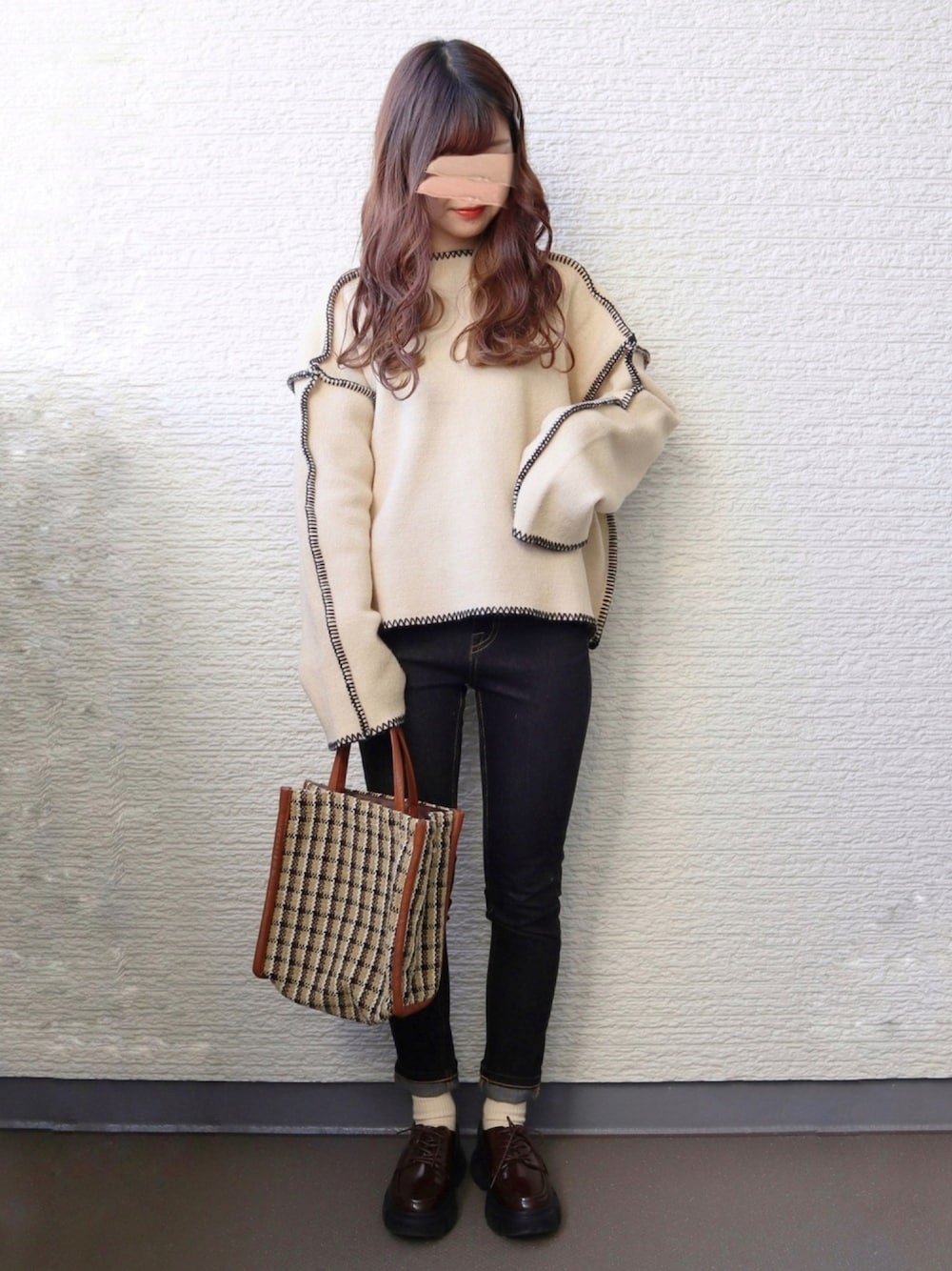 yuririn*のニット/セーター「カラーハンドステッチ2WAYニット」を使ったコーディネート