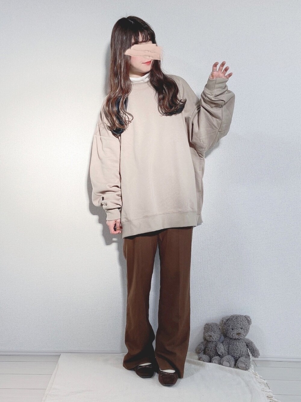 yuririn*のスウェット「裏起毛アソートプリントビッグシルエットトレーナー/オーバーサイズスウェット」を使ったコーディネート