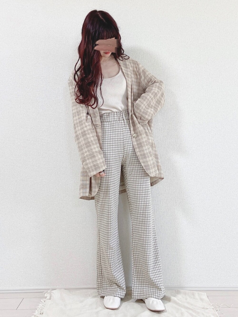 yuririn*のテーラードジャケット「チェックBIGジャケット」を使ったコーディネート