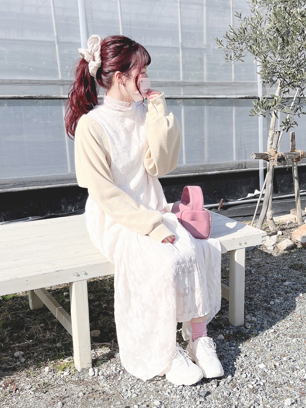 おはようございます\(¨ )/♡♡ いつもありがとうございます⌄̈⃝♥ もぉ3月なんですね(TT) 今月もよろしくお願いいたします.ᐟ.ᐟ いちご狩りコーデ🍓▹▸ 3月と言えばいちご狩り🍓(?) ビニールハウスの中は暖かいから アウター脱いでもかわいいコーデがマスト☺︎☺︎ バッグとソックスをピンクにしてみた🤍 ❁Instagram❁¨̮ →yuririn_wear