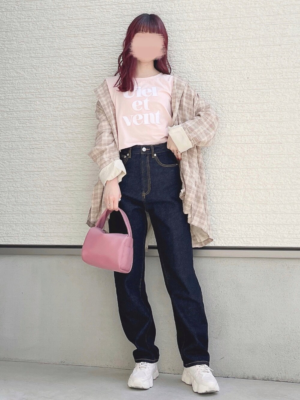 yuririn*のテーラードジャケット「チェックBIGジャケット」を使ったコーディネート