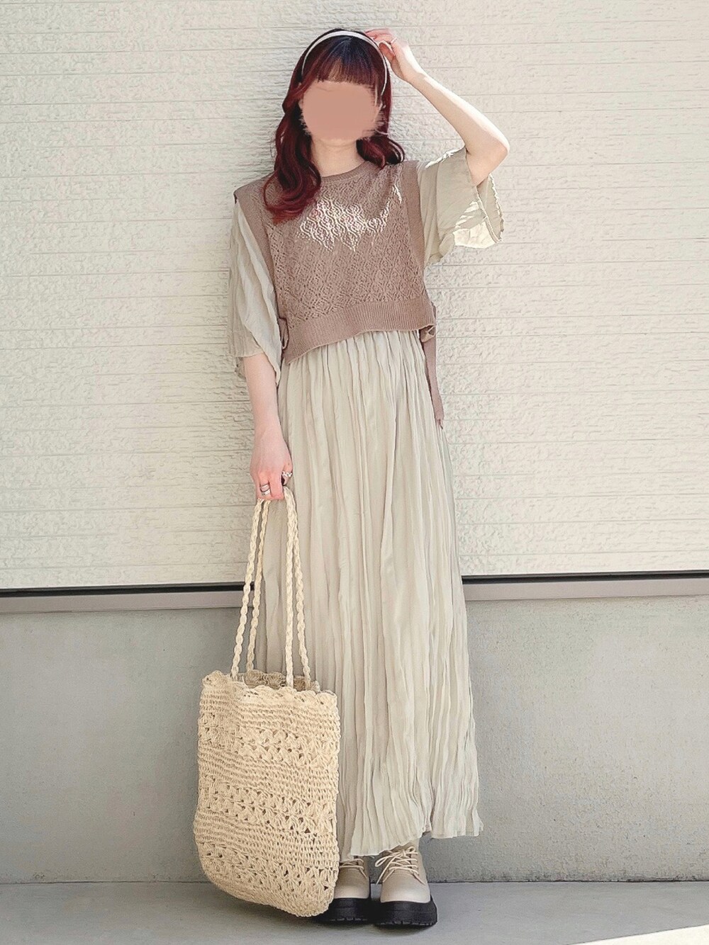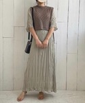 yuririn*のワンピース「【web限定item】透かし編みベスト+シワ加工シアーワンピース」を使ったコーディネート