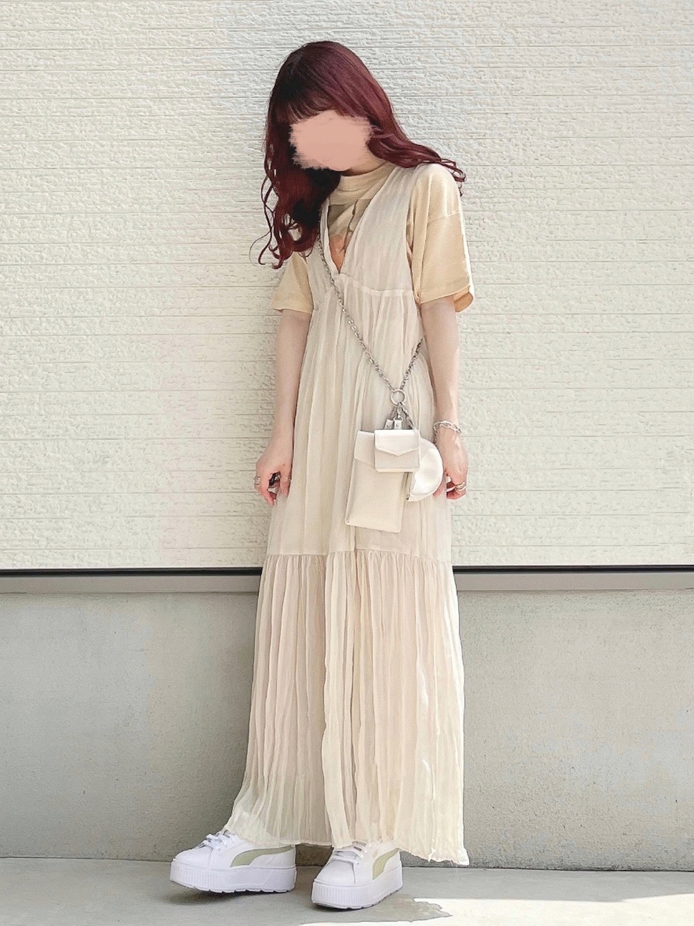 yuririn*のワンピース「【WEB限定】ワッシャーシフォン無地ワンピース」を使ったコーディネート