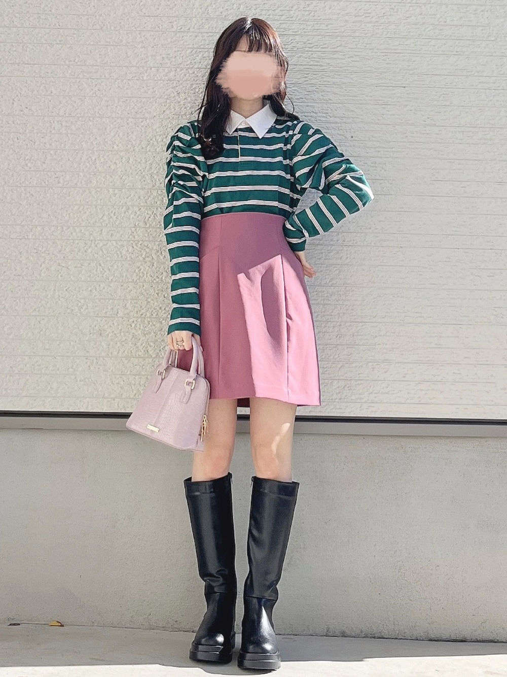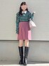 おはようございます\(¨ )/♡♡ いつもありがとうございます⌄̈⃝♥ カジュアルガーリーコーデ▹▸ プレッピーな雰囲気になる ラガーシャツを使ったコーデ🌷 グリーンのボーダーがピンクになってるから スカートもバッグもピンクで 合わせてみた♡♡ ❁Instagram❁¨̮ →yuririn_wear