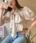 yuririn*のシャツ/ブラウス「【ZOZO限定】レースボウタイリボンブラウス」を使ったコーディネート