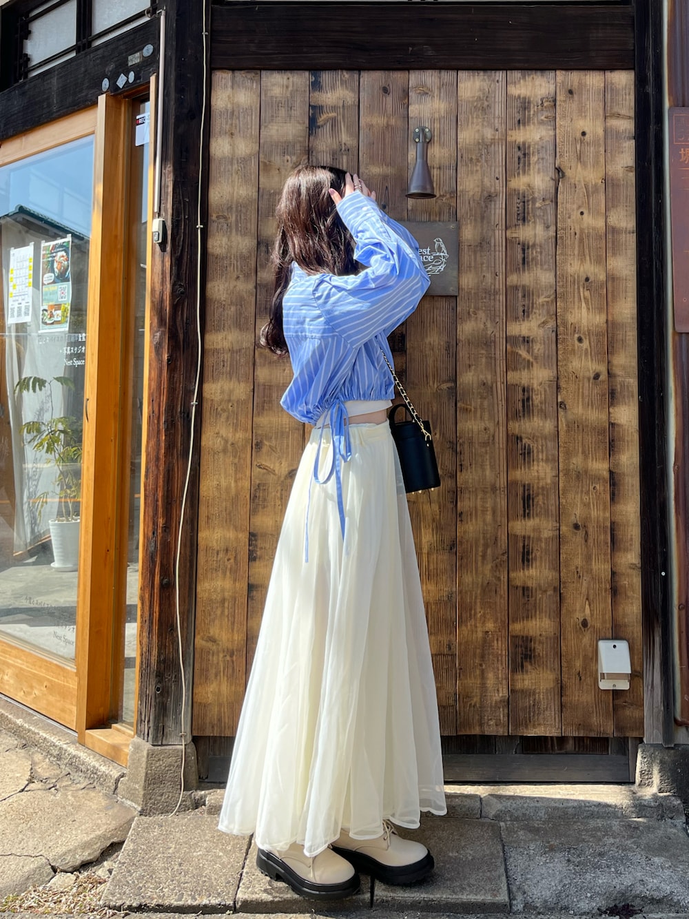 yuririn*のシャツ/ブラウス「ドロストクロップドシャツ」を使ったコーディネート