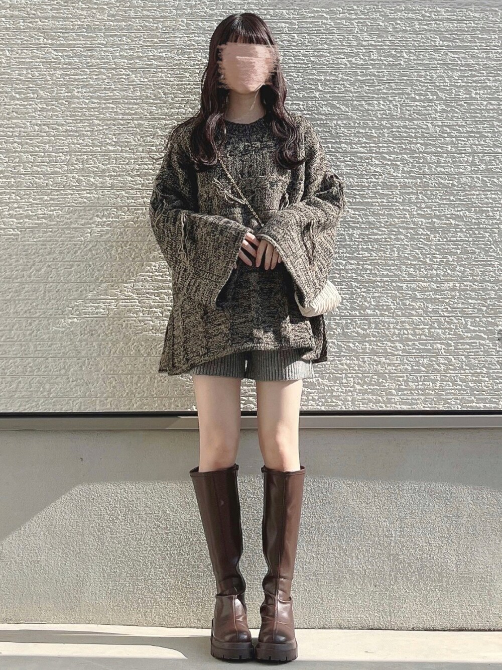 yuririn*のニット/セーター「cable pattern fringe volume knit」を使ったコーディネート