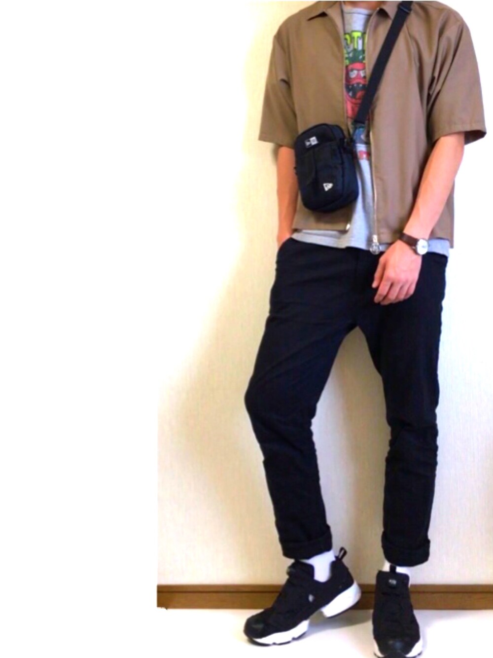 よっしーのショルダーバッグ「WEGO/NEWERA ミニショルダーバッグ」を使ったコーディネート