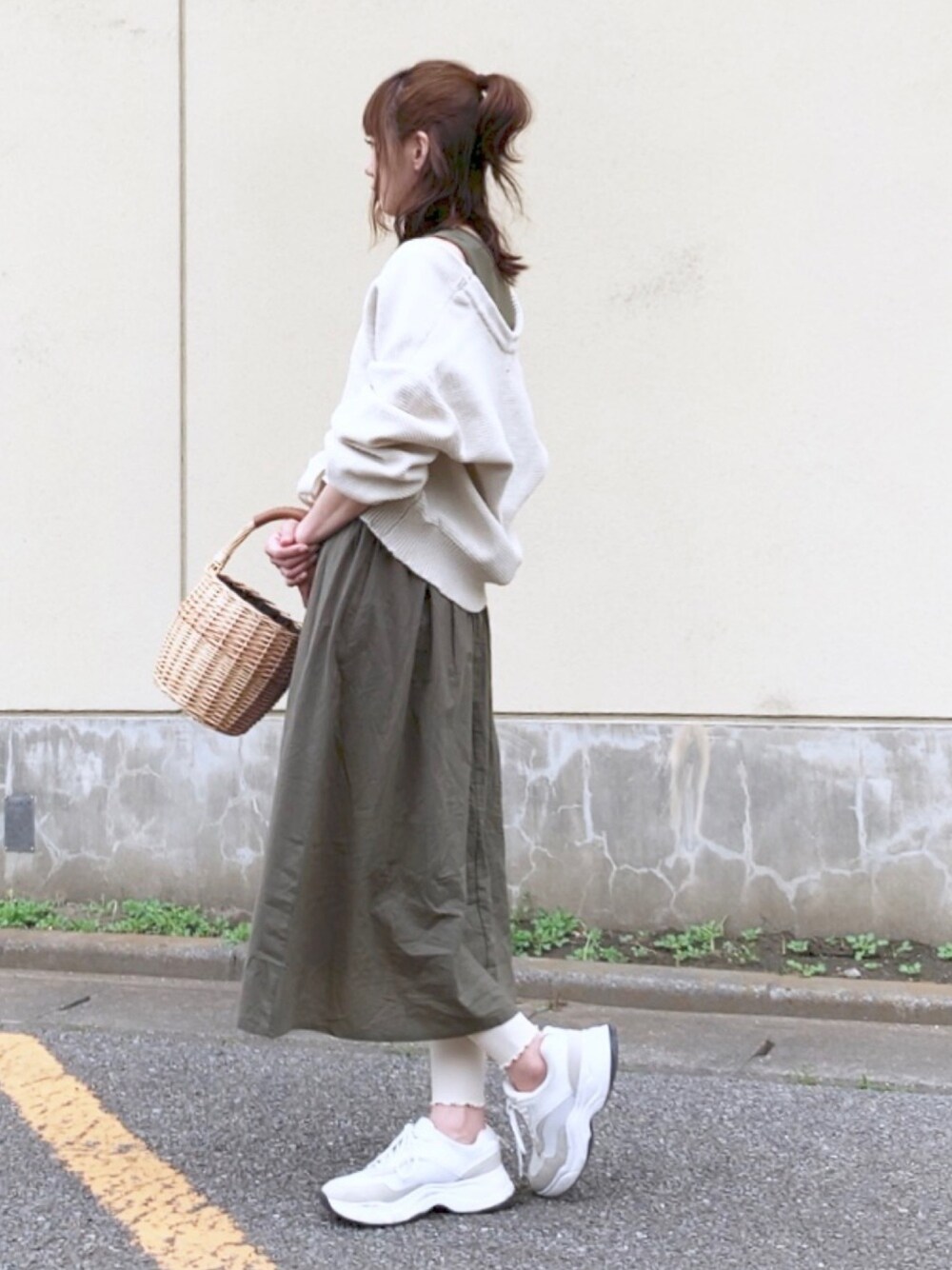 YOSSYのかごバッグ「エコファー付きバスケットバッグ」を使ったコーディネート