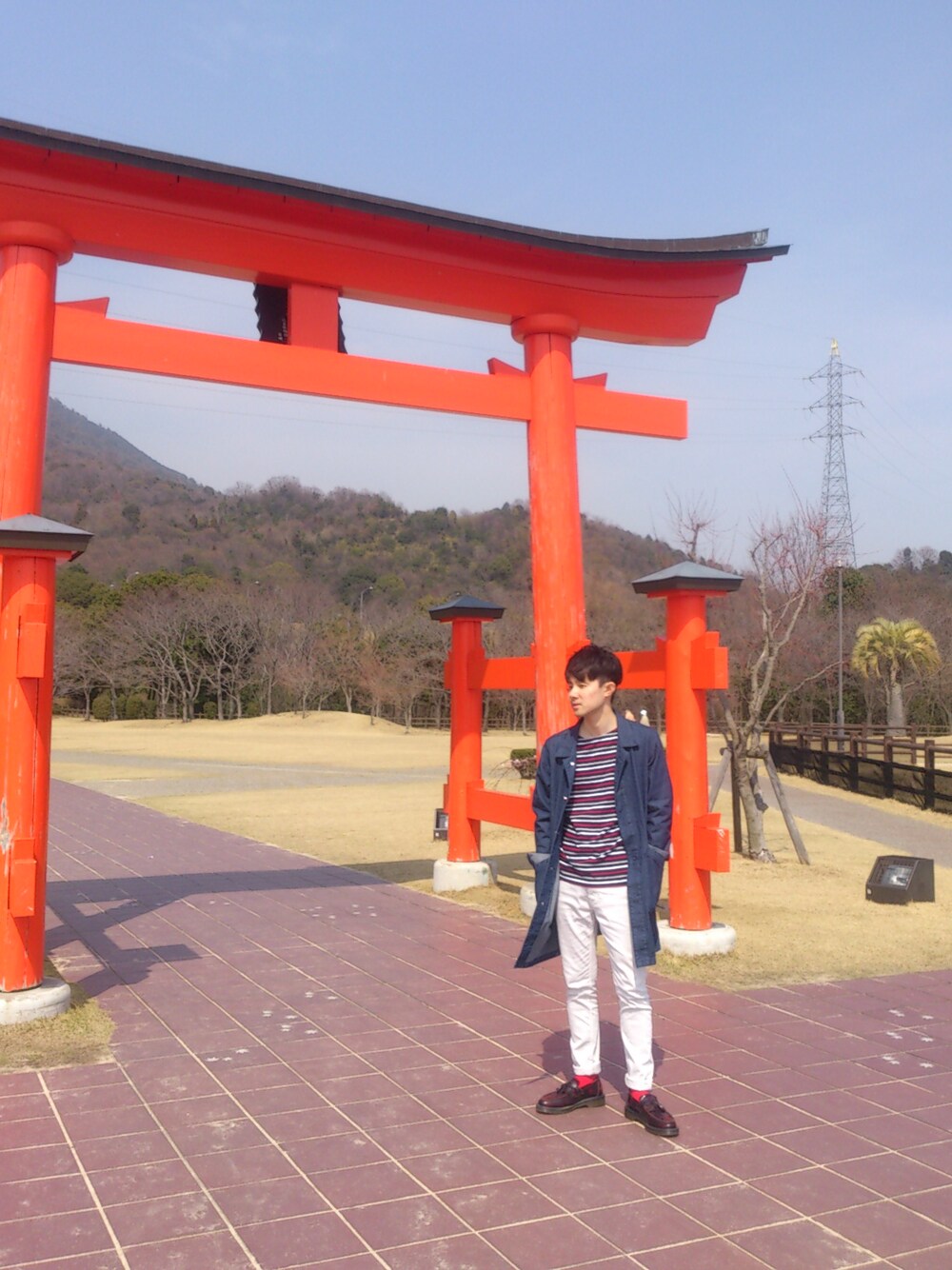 ドライブ途中のパーキングにて★旦那をぱしゃり。アウター ニコアンドパンツ ニコアンドシューズ ドクターマーチン