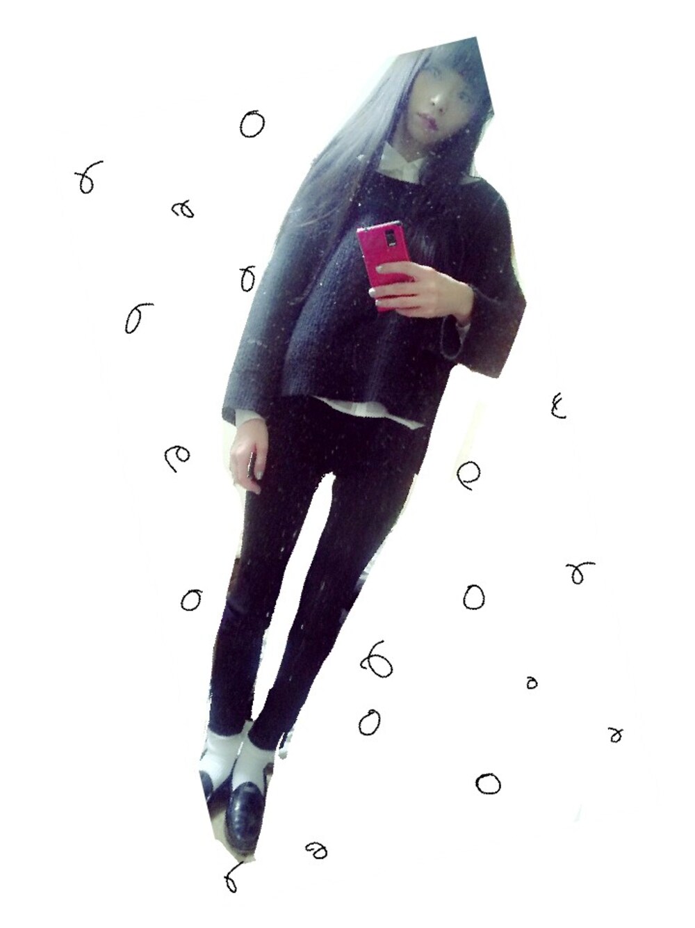 白と黒。 ニット LOWRYZFARM シャツ 古着(MARCURYDUO) ボトム H&M 靴下 tutuanna ローファー 古着(COLEHAAN)