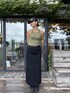 スニーカーなどに合わせずブーツやBIRKENSTOCKなどに合わせて海外スタイル風なコーディネートにしてみました^_^ こちらのスカートはストレッチ性と後ろのスリットでとても履き心地がいいアイテムです!いちおしです^_^