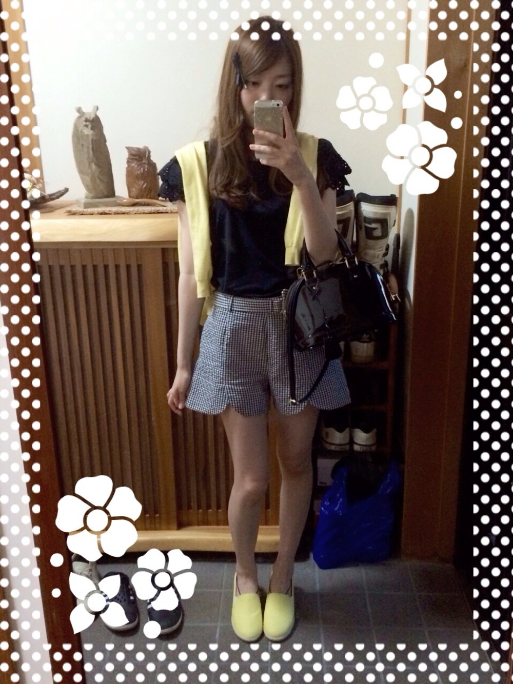 thpry+colorのモノトーンコーデに 黄色で差し色٩(◦`꒳´◦)۶ カーデ:UNIQLO インヒールスリッポン:titivate