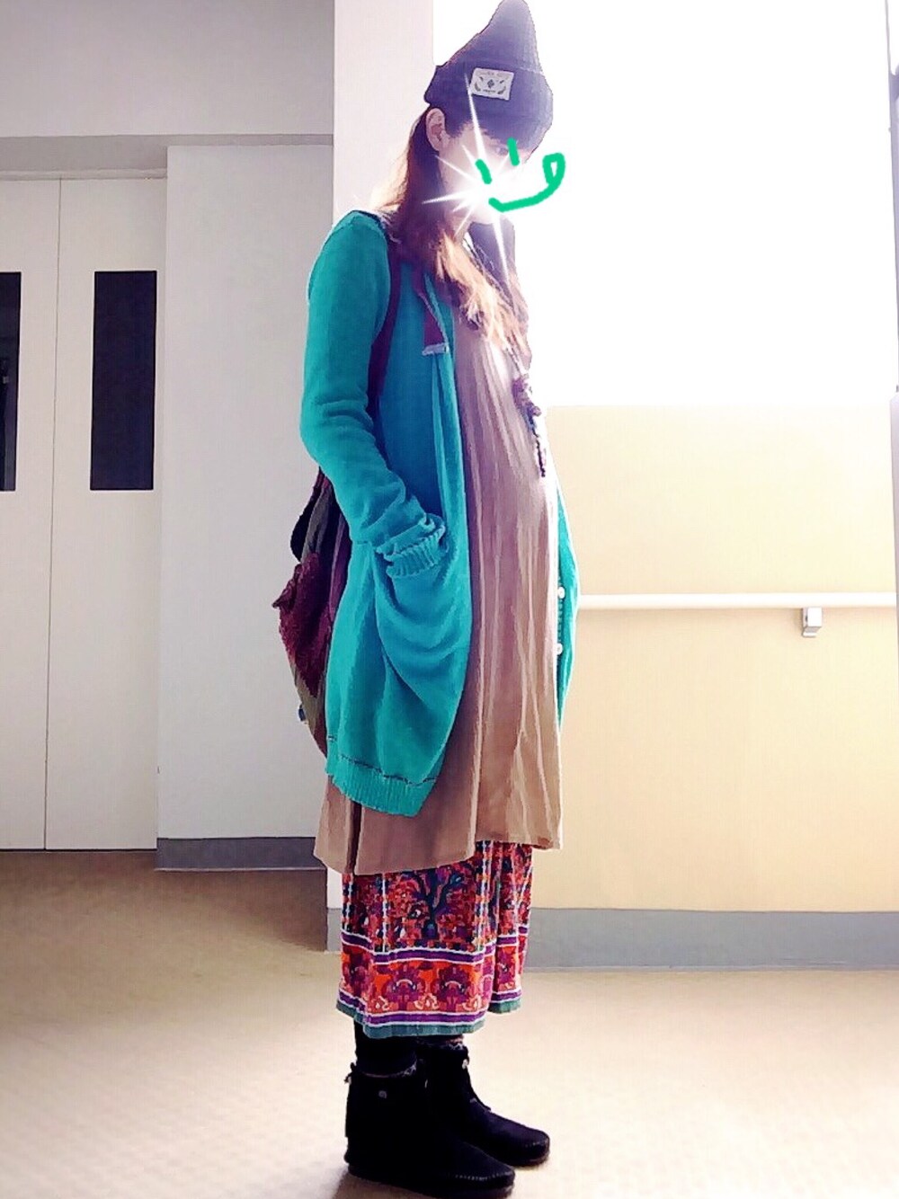 パンツはウエストきっつきつなので、折って折って太ももで履いてます。 マタニティウェア買わなくてもイケるもんだな。